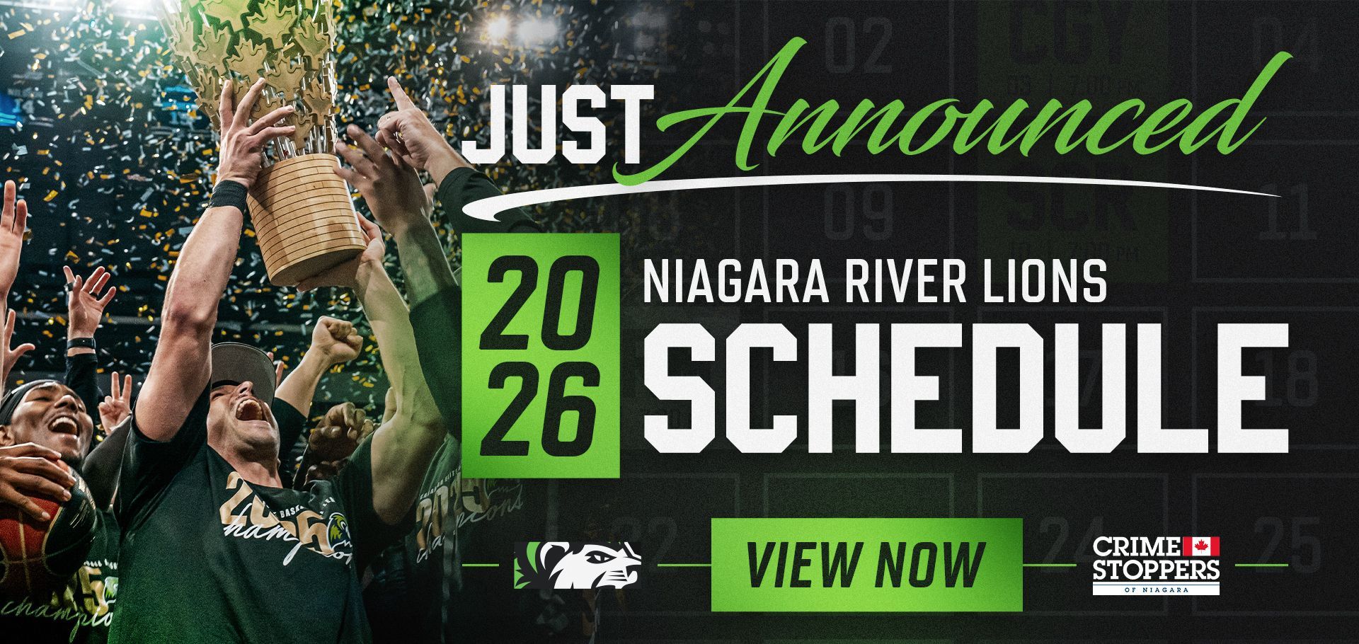 St. Catharines, ON – The Niagara River Lions of the Canadian Elite Basketball League (CEBL) announced Thursday their 24-game 2026 season schedule presented by Crime Stoppers Niagara . The reigning back-to-back CEBL Champions (2024,2025) will open the season with a four-game road trip, tipping off against the Ottawa BlackJacks on Monday May 18th, followed by matchups with the Winnipeg Seabears on Friday May 22nd, Edmonton Stingers on Sunday May 24th and the Montreal Alliance on Tuesday May 26th. The River Lions will then return home for the Home Opener at the Meridian Centre on Friday May 29th when they host the Vancouver Bandits . In 2025, the Niagara River Lions marked the 10th anniversary of the franchise while completing their seventh season as a member of the Canadian Elite Basketball League. The club concluded the campaign with a 14–10 regular-season record and captured its second consecutive CEBL championship, defeating the Calgary Surge 79–73 in Winnipeg to further cement its place among the league’s elite. “As we unveil our 2026 schedule, our focus remains the same: delivering an exceptional experience for our fans, our partners, and the Niagara community. We look forward to returning to celebrate our second championship together, while staying hungry and determined as we chase our third” said Michelle Biskup, President of the team. New this year, the league will host a full in-market playoff model and the first best-of-three CEBL Finals series. The 2026 Canadian Elite Basketball League Playoffs will begin with single-elimination Conference Semifinals on Thursday, August 6, where the 1st seed faces the 4th seed and the 2nd seed faces the 3rd seed in each conference. Winners will advance to the Conference Finals on Saturday, August 8, also single elimination, with higher seeds hosting each round. The CEBL Finals will be a best-of-three series from August 12–16, marking the first multi-game playoff series in league history: Game 1 – August 12 Game 2 – August 15 Game 3 (if necessary) – August 16 The lower seed team will host Game 1, while the higher seed will host Games 2 and 3 (if necessary), replacing the previous single-elimination Championship Weekend host team model. Key highlights of the River Lions’ 2026 schedule include: May 29th home opener at the Meridian Centre at 7:00pm versus the Vancouver Bandits A 24 game schedule including 12 home games at the Meridian Centre and 12 games on the road over the thirteen weeks Four Friday, two Wednesday, one Thursday and one Saturday evening home game nights A School Day Game on Friday June 19th at 11:00 am A five game home stand starting May 29 A championship rematch on June 3rd versus the Calgary Surge The final home game on Sunday July 26th at 3:00pm versus the Ottawa Blackjacks Niagara River Lions season tickets are now available, with voucher packs, group and single-game tickets set to go on sale in the coming months. Fans can find ticket information at www.riverlions.ca/tickets or by calling 289-273-5905 or visiting 102-10 Albert St. East, Thorold. In 2025, the CEBL featured 17 players with NBA experience, and nearly 70 per cent of its athletes were Canadian – the highest proportion of domestic talent in any professional sports league in the country. To date, nearly 40 players have signed NBA contracts following CEBL seasons, which run from May through August. For more information about the league, visit CEBL.ca or follow @cebleague on Instagram, Twitter, TikTok, LinkedIn, Facebook, and YouTube. Full schedule details for the Niagara River Lions are available at www.riverlions.ca/schedule .