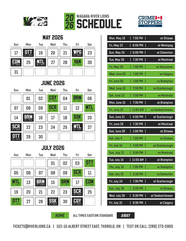 We will keep you posted on the latest news and information regarding the River Lions.